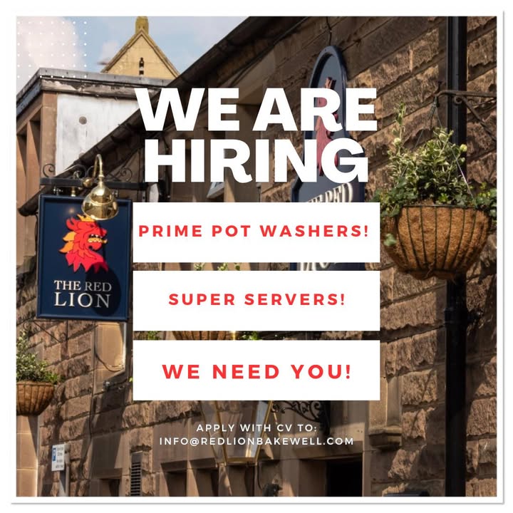 Hey guys, looking to earn a few quid to boost your finances, maybe between studies? Saving for a holiday, a car maybe or just funds for fun socials? We are looking for hardworking and happy staff to join our amazing team here at The Red Lion in beautiful Bakewell! Monday to Sunday availability in a busy buzzing environment! Always fun, never boring! If this sounds good to you, ping us an email now! What are you waiting for!! #wearehiring #staffrequired #waitingstaff #jobvacancy
